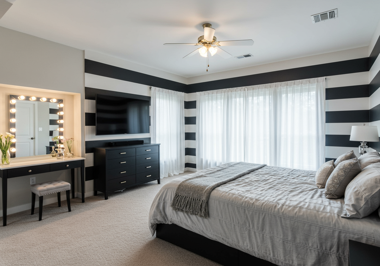 Upstairs is where you’ll find the master suite as well as 2 additional bedrooms. The spacious master has vaulted ceilings, a custom-built walk-in closet, makeup vanity nook and an amazing master bathroom.