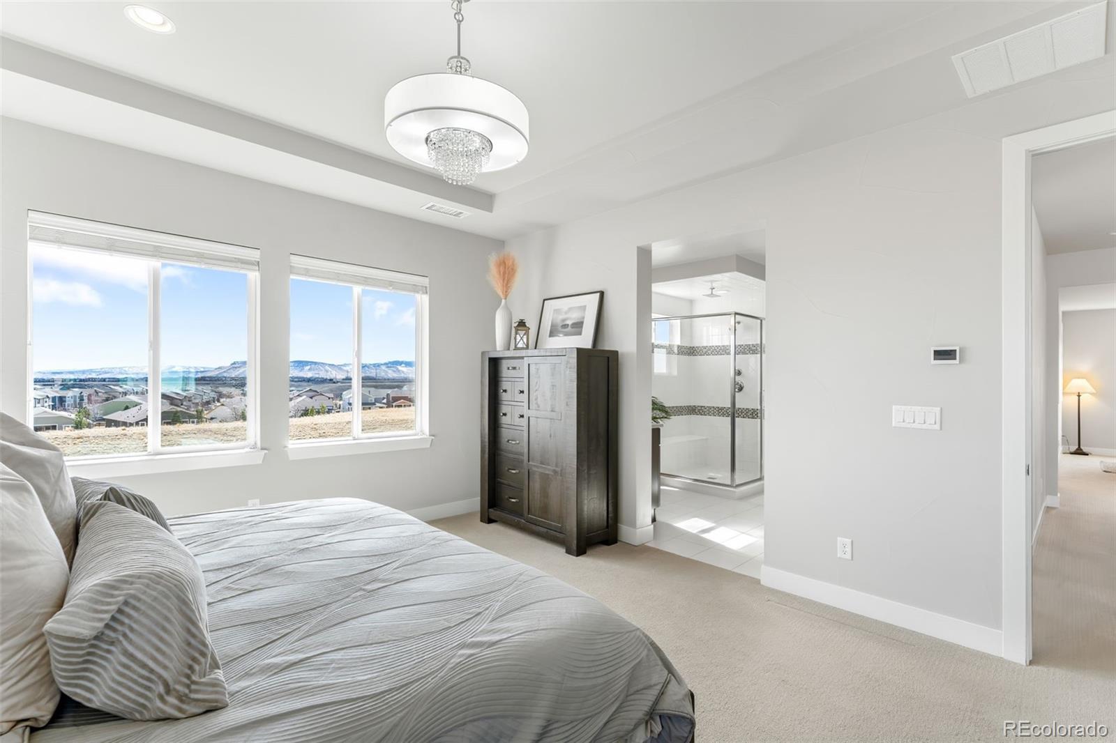 Back on market at no fault of Seller! Welcome to your dream home, where breathtaking mountain and Denver skyline views greet you at every turn. This stunning residence offers a wonderful layout, starting with the main level that boasts huge windows, bathing the space in natural light. Here, you'll find a guest or mother-in-law en suite, a dedicated powder room, and a gorgeous fireplace that sets the tone for cozy evenings.