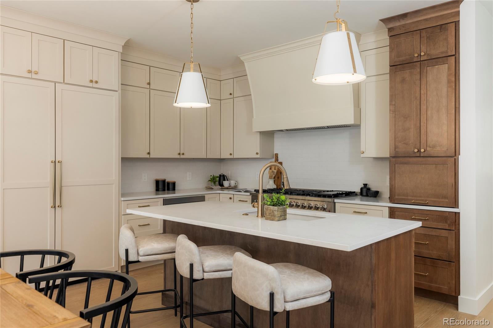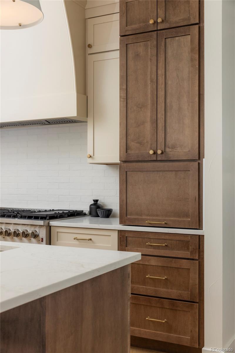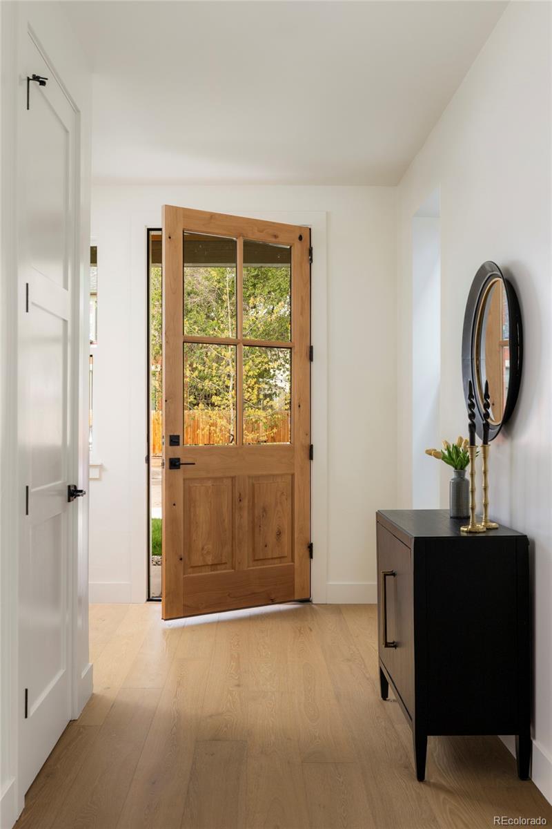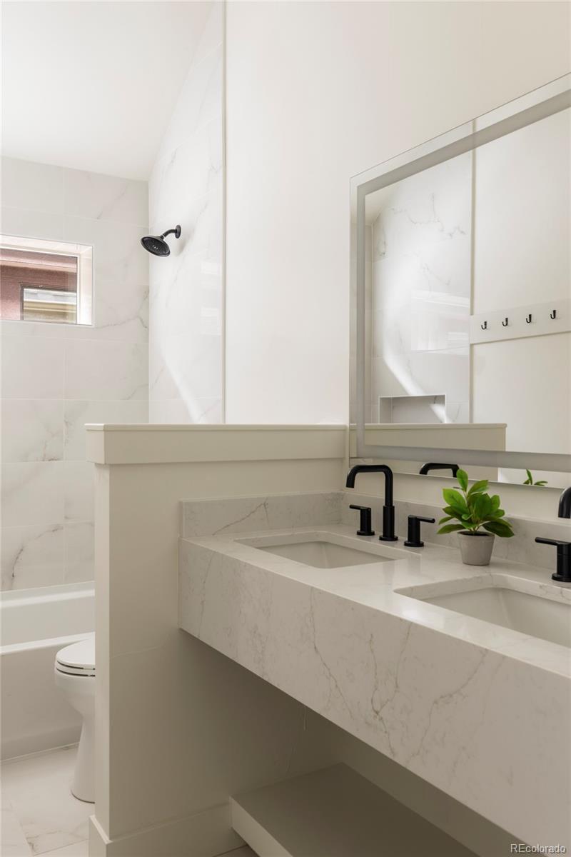 Stunning new construction at 2910 Hooker St in Denver's vibrant West Highlands. Walk to the shops and restaurants on 32nd, and easy access to Sloan's Lake! This modern gem features a timeless brick facade that seamlessly blends with the neighborhood's classic architecture, and is sure to impress with every square foot creatively used. Enjoy the open first floor plan with engineered hardwood floors centered around a chef's kitchen, anchored by beautiful cabinets, quartz countertops, 48" dual fuel range, and a built-in paneled Jen Air refrigerator & freezer. The focus of the living room is the 42" gas fireplace with custom trim surround and oversized glass sliding doors leading to the backyard. The upstairs has 14' vaulted ceilings, engineered hardwood floors, 3 bedrooms, 2 bathrooms, and a laundry room. The luxurious primary suite flaunts a custom walk-in closet and 5-piece bath (walk-in shower, soaker tub, double vanities, private toilet). The carpeted basement has impressive 9' ceiling clearance and includes a large living room, kitchenette wet bar, two bedrooms(one non-conforming--ideal office/flex), dual-sink bathroom, and second laundry space. The backyard has a covered patio, a gas line for a grill, and a detached 2 car garage. Additional highlights include zoned thermostats per floor, central A/C, tankless water heater large front yard that can be fenced, and a one year builder warranty.
