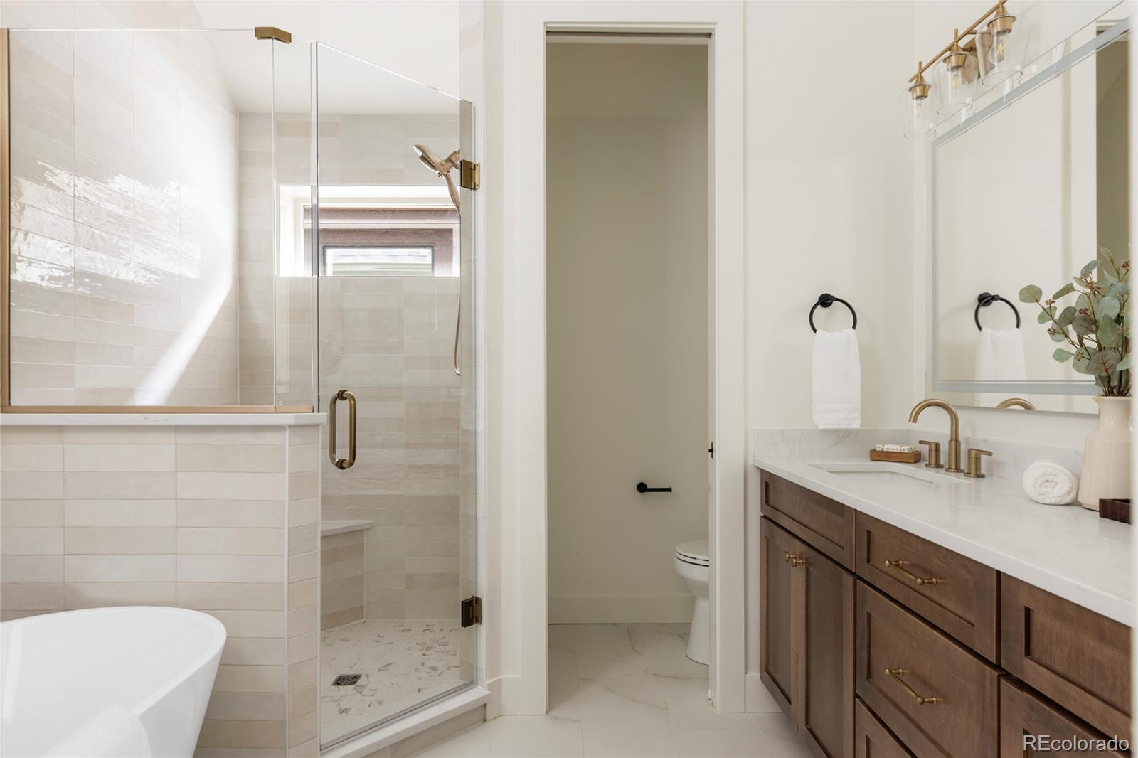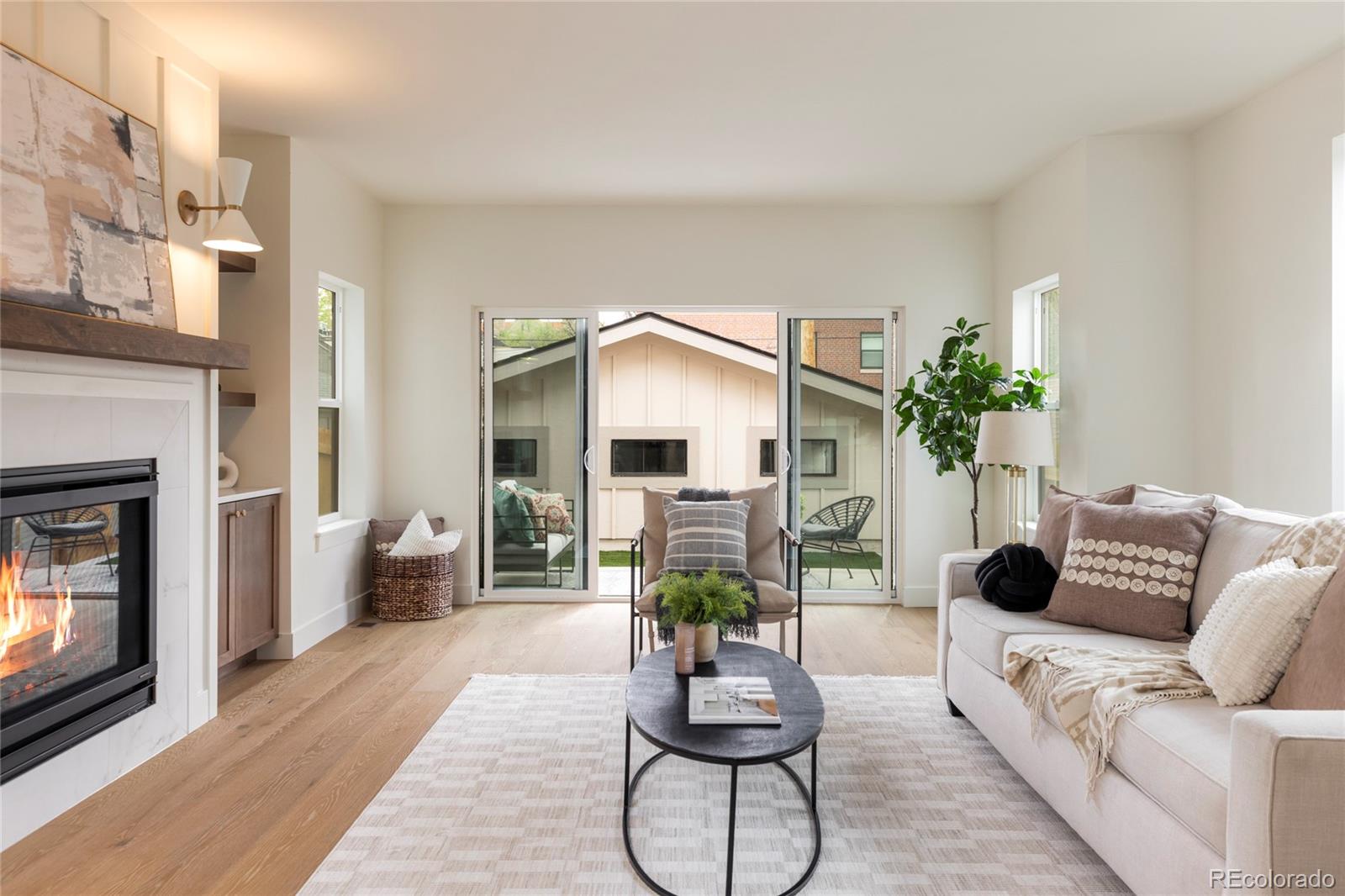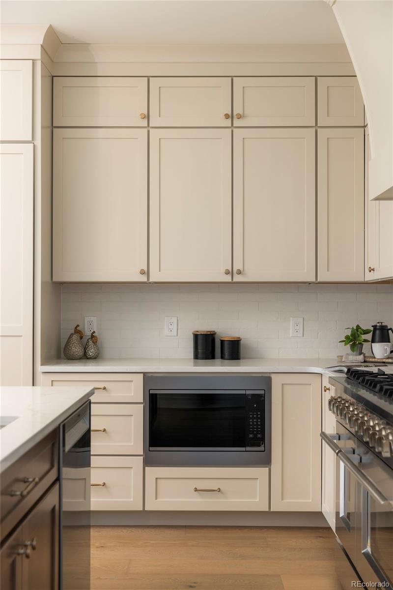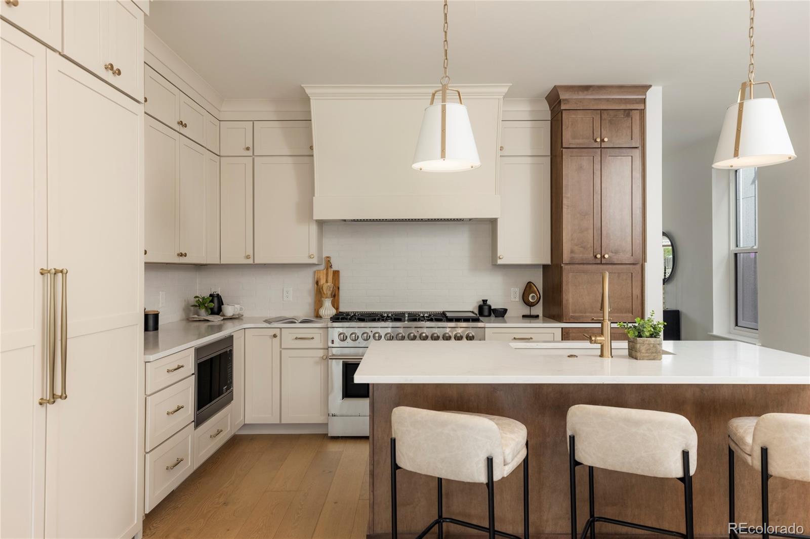 Stunning new construction at 2910 Hooker St in Denver's vibrant West Highlands. Walk to the shops and restaurants on 32nd, and easy access to Sloan's Lake! This modern gem features a timeless brick facade that seamlessly blends with the neighborhood's classic architecture, and is sure to impress with every square foot creatively used. Enjoy the open first floor plan with engineered hardwood floors centered around a chef's kitchen, anchored by beautiful cabinets, quartz countertops, 48" dual fuel range, and a built-in paneled Jen Air refrigerator & freezer. The focus of the living room is the 42" gas fireplace with custom trim surround and oversized glass sliding doors leading to the backyard. The upstairs has 14' vaulted ceilings, engineered hardwood floors, 3 bedrooms, 2 bathrooms, and a laundry room. The luxurious primary suite flaunts a custom walk-in closet and 5-piece bath (walk-in shower, soaker tub, double vanities, private toilet). The carpeted basement has impressive 9' ceiling clearance and includes a large living room, kitchenette wet bar, two bedrooms(one non-conforming--ideal office/flex), dual-sink bathroom, and second laundry space. The backyard has a covered patio, a gas line for a grill, and a detached 2 car garage. Additional highlights include zoned thermostats per floor, central A/C, tankless water heater large front yard that can be fenced, and a one year builder warranty.