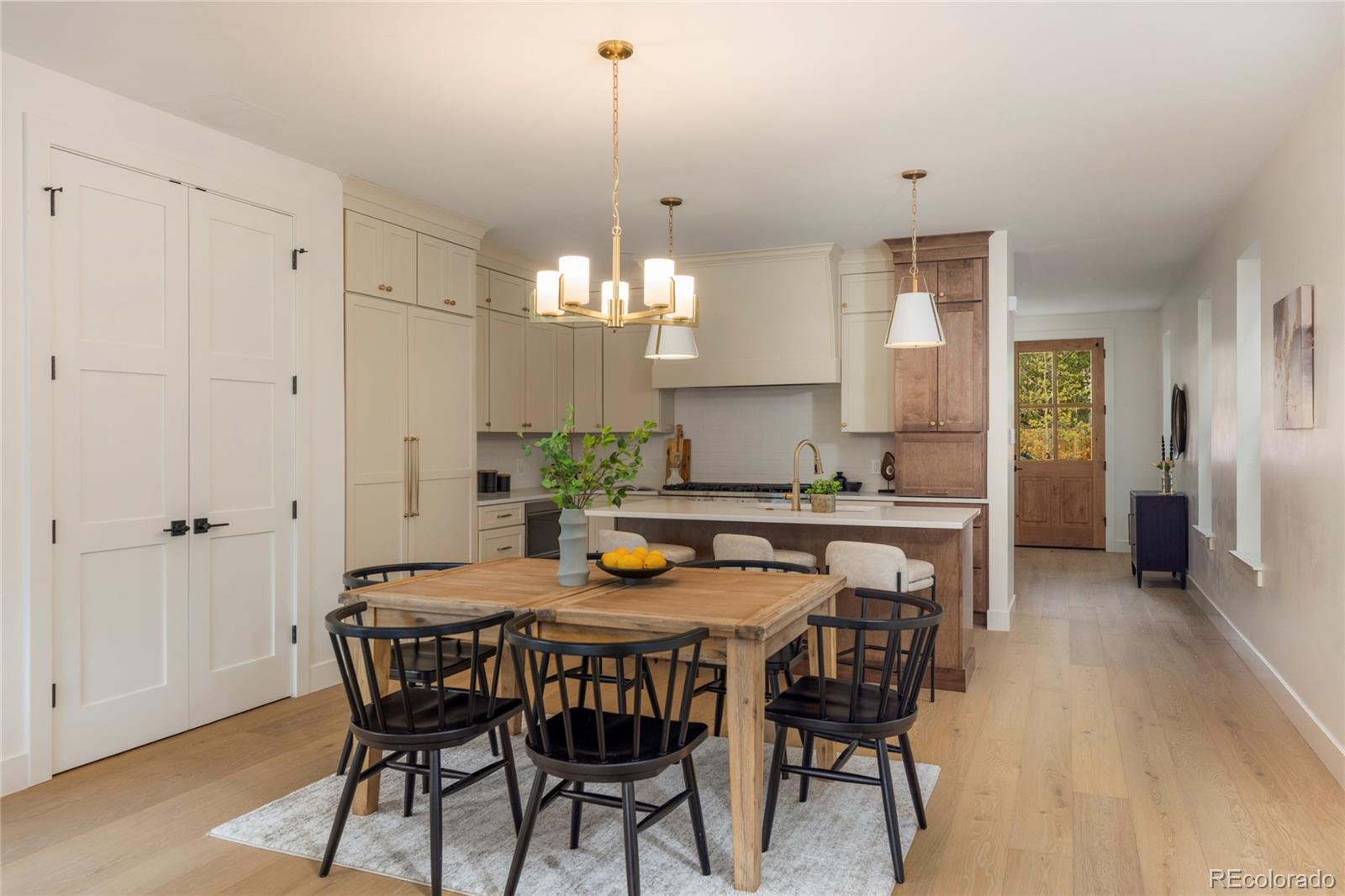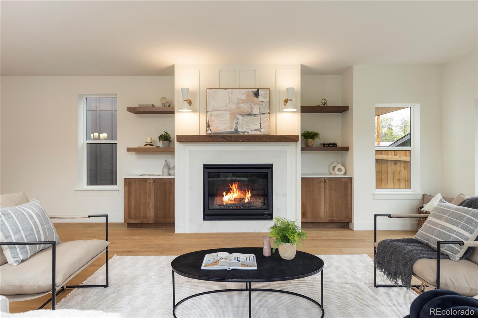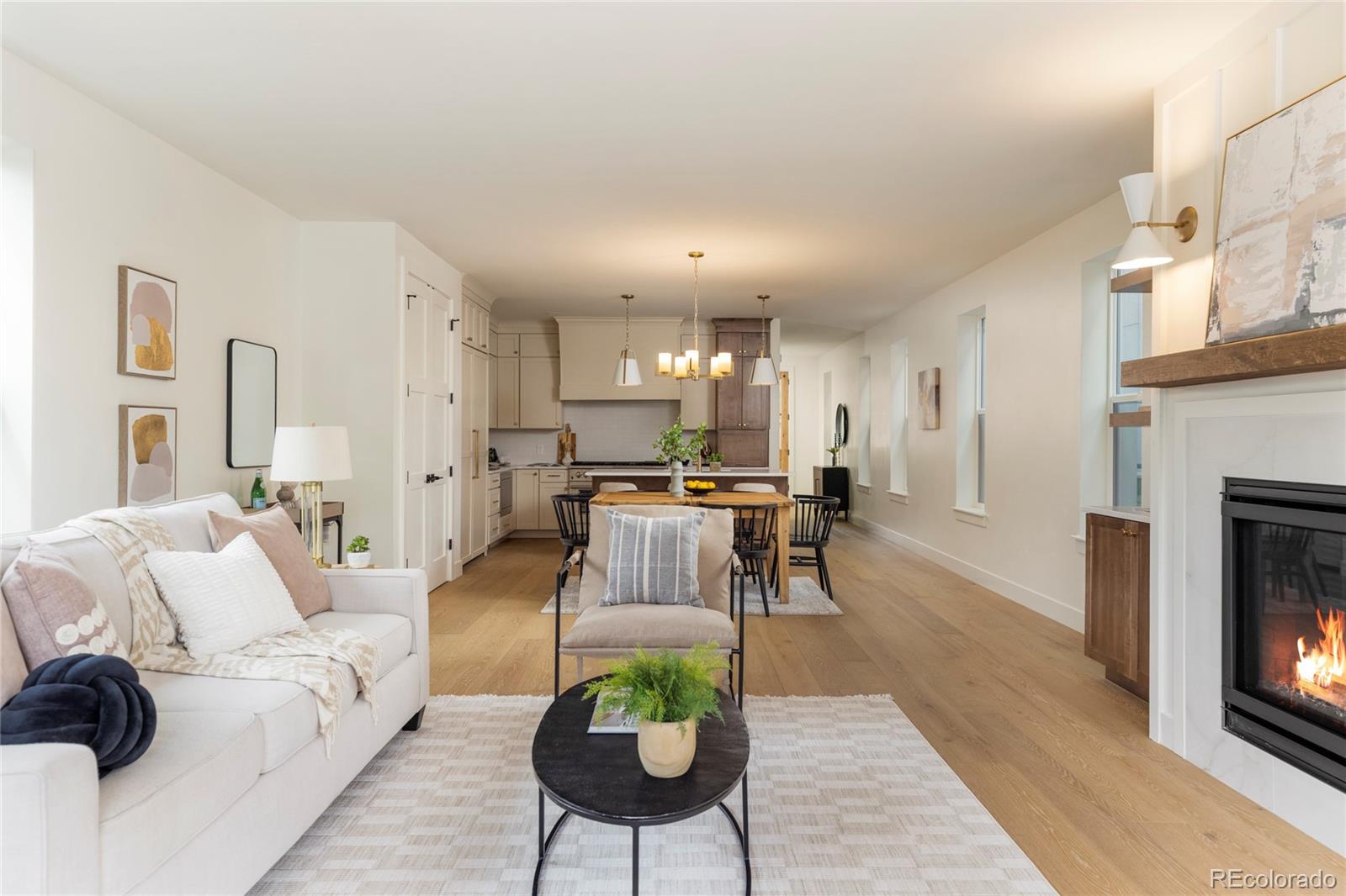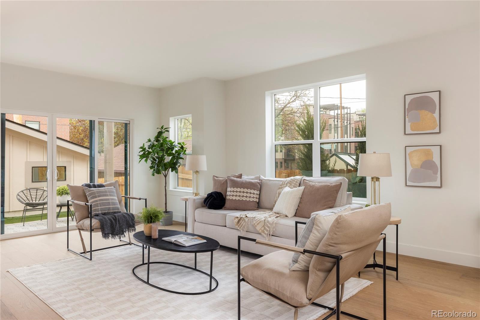 Stunning new construction at 2910 Hooker St in Denver's vibrant West Highlands. Walk to the shops and restaurants on 32nd, and easy access to Sloan's Lake! This modern gem features a timeless brick facade that seamlessly blends with the neighborhood's classic architecture, and is sure to impress with every square foot creatively used. Enjoy the open first floor plan with engineered hardwood floors centered around a chef's kitchen, anchored by beautiful cabinets, quartz countertops, 48" dual fuel range, and a built-in paneled Jen Air refrigerator & freezer. The focus of the living room is the 42" gas fireplace with custom trim surround and oversized glass sliding doors leading to the backyard. The upstairs has 14' vaulted ceilings, engineered hardwood floors, 3 bedrooms, 2 bathrooms, and a laundry room. The luxurious primary suite flaunts a custom walk-in closet and 5-piece bath (walk-in shower, soaker tub, double vanities, private toilet). The carpeted basement has impressive 9' ceiling clearance and includes a large living room, kitchenette wet bar, two bedrooms(one non-conforming--ideal office/flex), dual-sink bathroom, and second laundry space. The backyard has a covered patio, a gas line for a grill, and a detached 2 car garage. Additional highlights include zoned thermostats per floor, central A/C, tankless water heater large front yard that can be fenced, and a one year builder warranty.