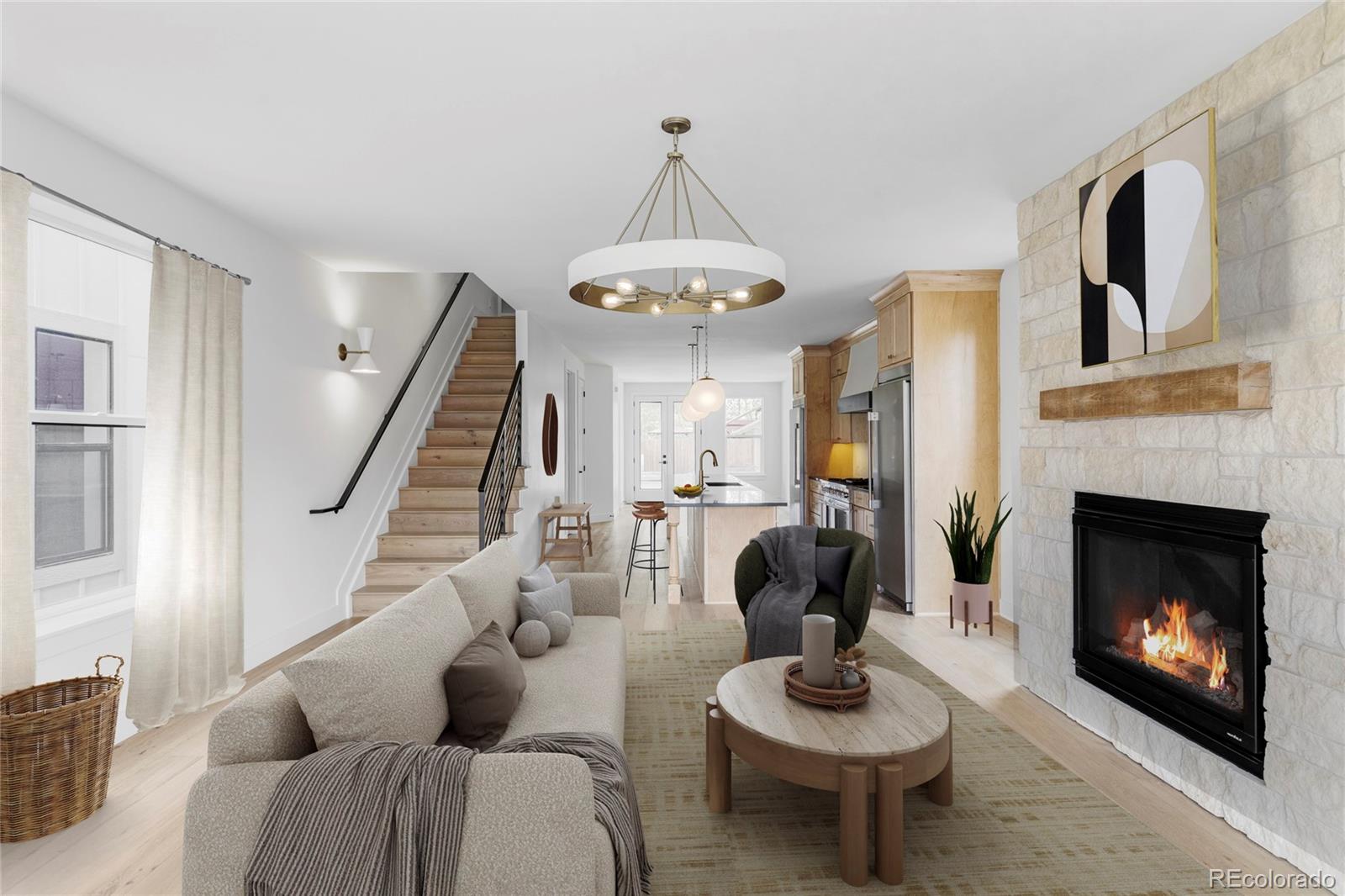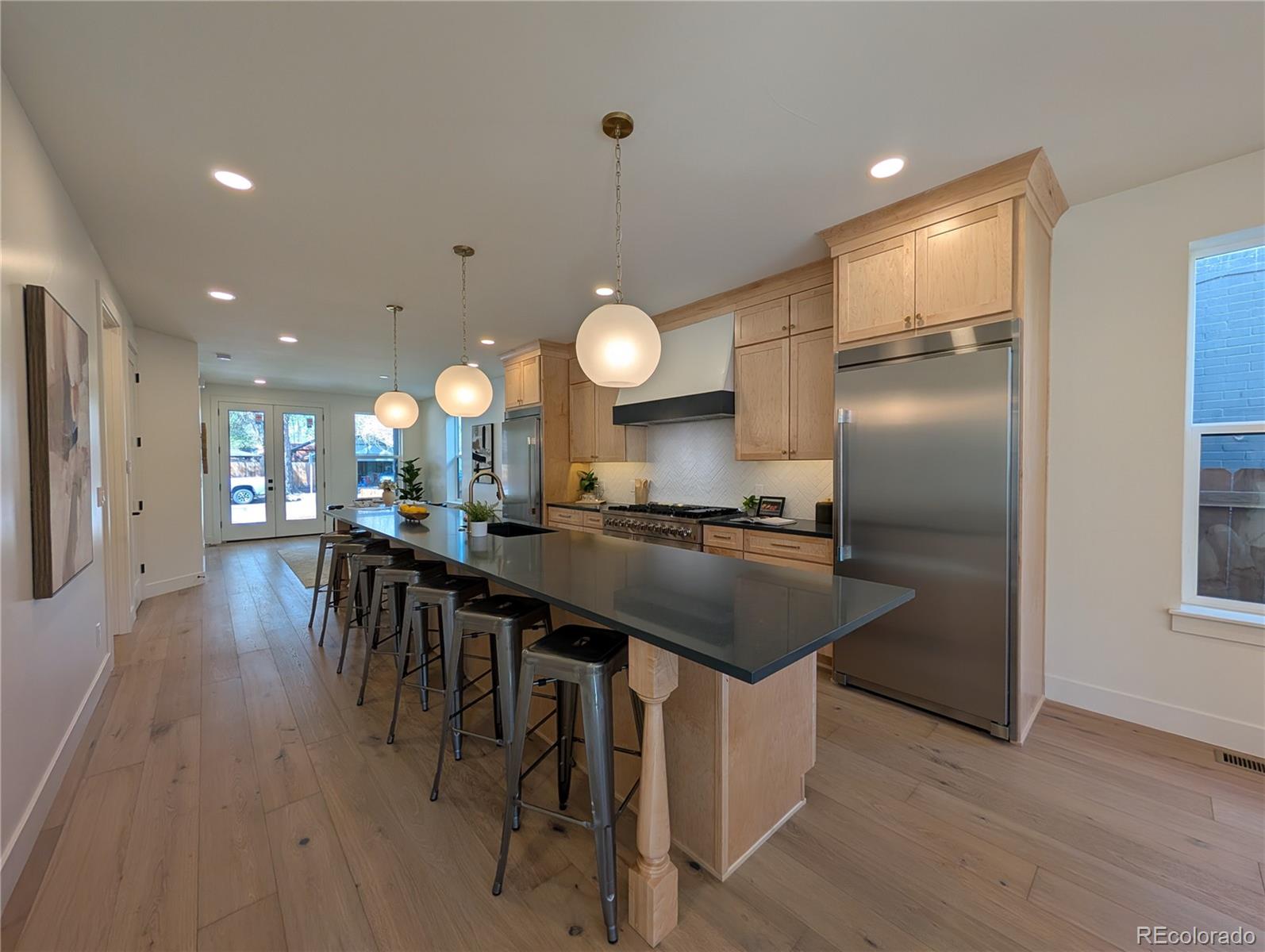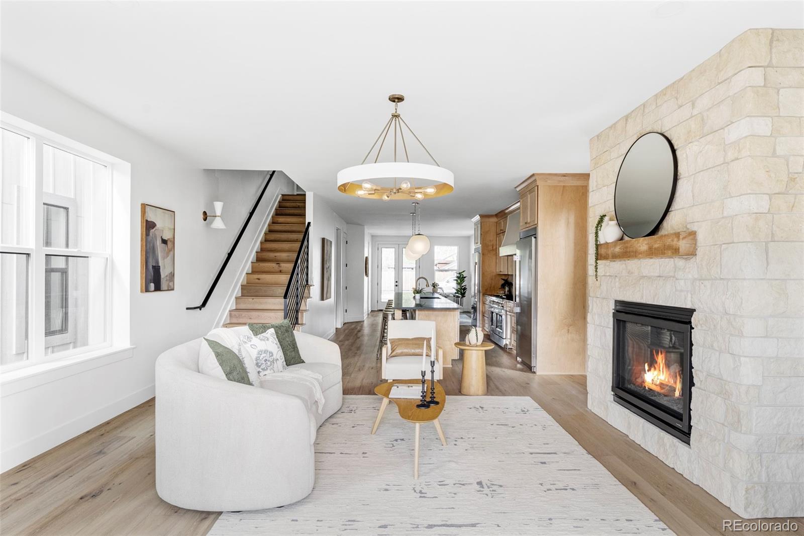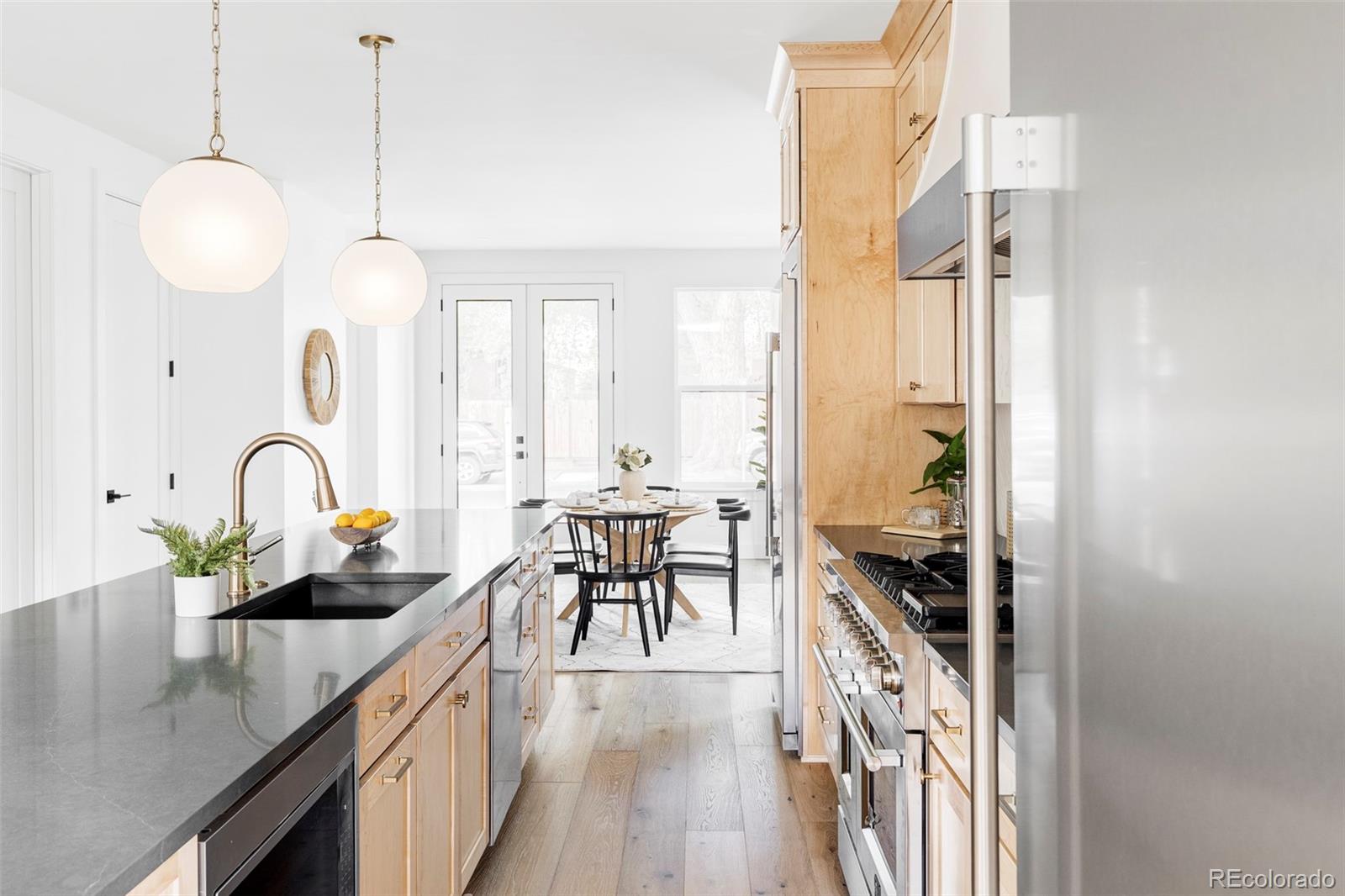 Stunning new construction at 2914 Hooker St in Denver's vibrant West Highlands. Walk to the shops and restaurants on 32nd, and easy access to Sloan's Lake! This modern gem features a timeless brick facade that seamlessly blends with the neighborhood's classic architecture, and is sure to impress with every square foot creatively used. Enjoy the open first floor plan with engineered hardwood floors centered around a chef's kitchen, anchored by an oversized island, quartz countertops, 48" dual fuel range, and matching built-in refrigerator & freezer. The focus of the living room is the 42" gas fireplace with stone-surround and oversized glass sliding doors leading to the backyard. Don't miss the mudroom that provides ample storage for coats, shoes etc. The upstairs has 14' vaulted ceilings, engineered hardwood floors, 3 bedrooms, 2 bathrooms, and a laundry room. The luxurious primary suite flaunts a custom walk-in closet and 5-piece bath (walk-in shower, soaker tub, double vanities, private toilet). The carpeted basement has impressive 9' ceiling clearance and includes a large living room, kitchenette wet bar, two bedrooms(one non-conforming--ideal office/flex), dual-sink bathroom, and second laundry space. The backyard has a covered patio, a gas line for a grill, and a detached 2 car garage. Additional highlights include zoned thermostats per floor, central A/C, tankless water heater large front yard that can be fenced, and a one year builder warranty. Call today to schedule a showing! Open house Saturday 11:00 - 1:00.