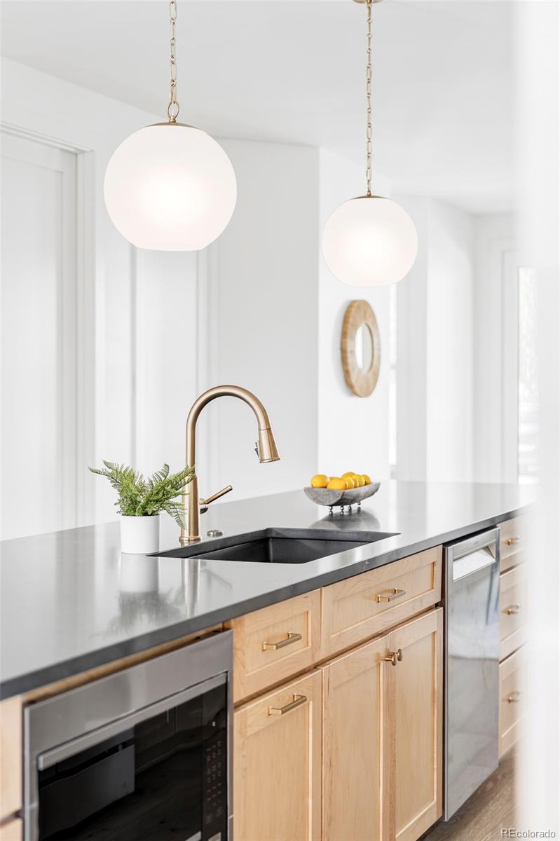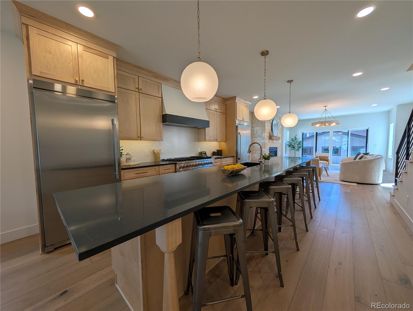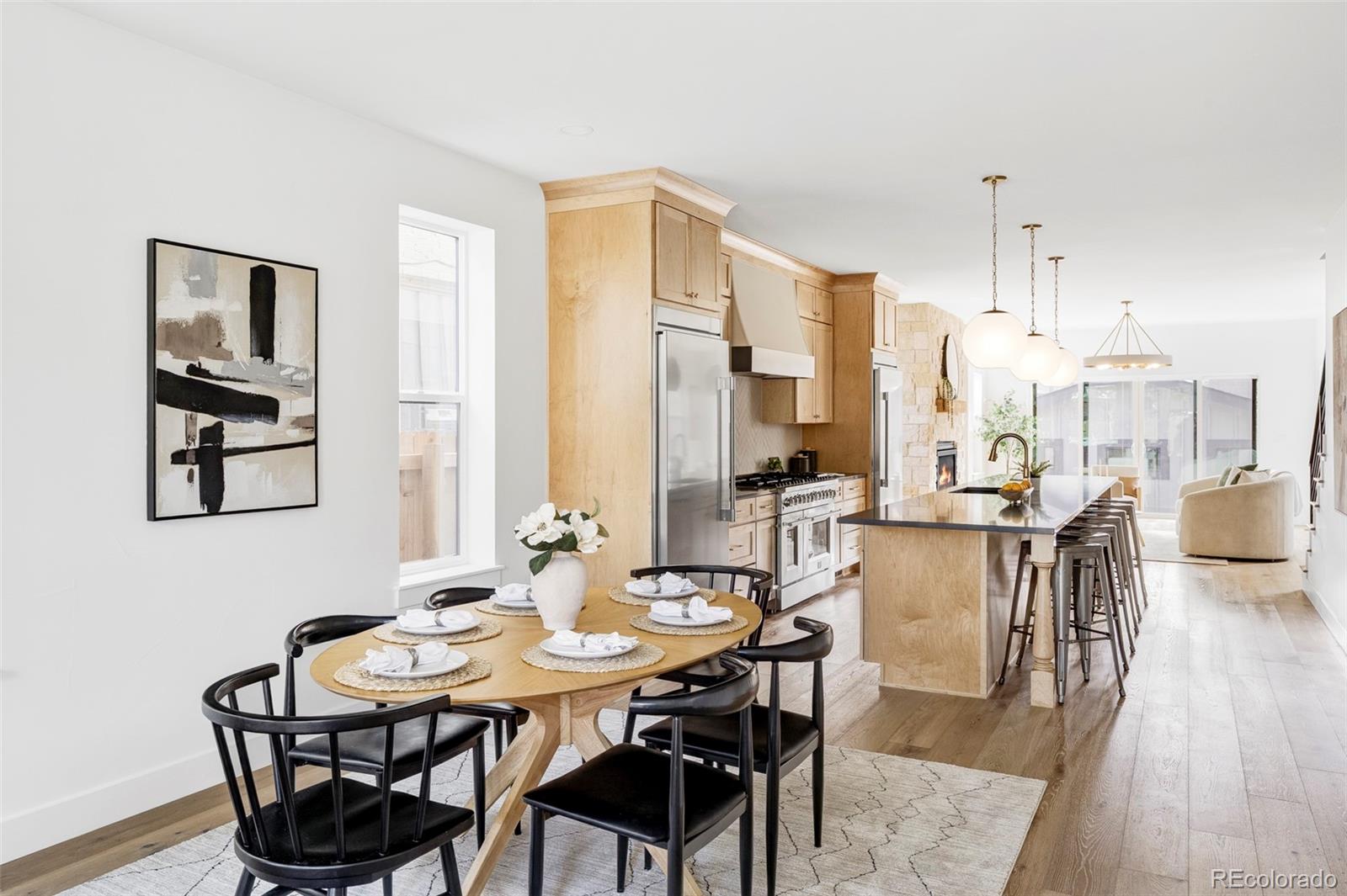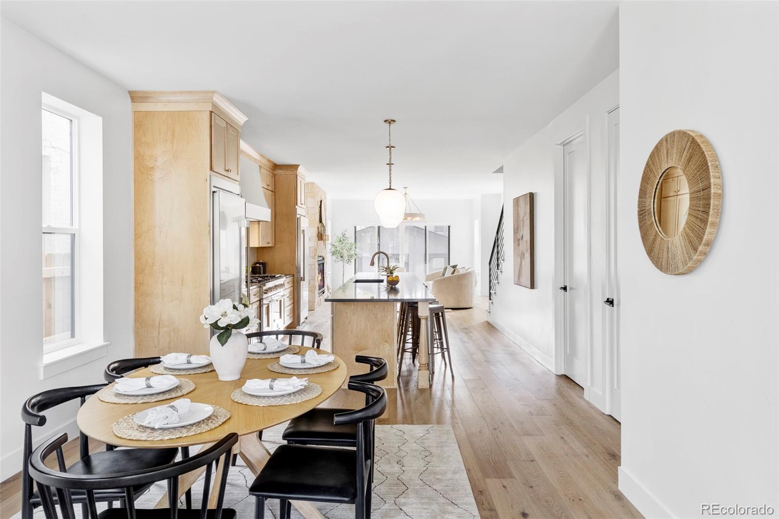 Stunning new construction at 2914 Hooker St in Denver's vibrant West Highlands. Walk to the shops and restaurants on 32nd, and easy access to Sloan's Lake! This modern gem features a timeless brick facade that seamlessly blends with the neighborhood's classic architecture, and is sure to impress with every square foot creatively used. Enjoy the open first floor plan with engineered hardwood floors centered around a chef's kitchen, anchored by an oversized island, quartz countertops, 48" dual fuel range, and matching built-in refrigerator & freezer. The focus of the living room is the 42" gas fireplace with stone-surround and oversized glass sliding doors leading to the backyard. Don't miss the mudroom that provides ample storage for coats, shoes etc. The upstairs has 14' vaulted ceilings, engineered hardwood floors, 3 bedrooms, 2 bathrooms, and a laundry room. The luxurious primary suite flaunts a custom walk-in closet and 5-piece bath (walk-in shower, soaker tub, double vanities, private toilet). The carpeted basement has impressive 9' ceiling clearance and includes a large living room, kitchenette wet bar, two bedrooms(one non-conforming--ideal office/flex), dual-sink bathroom, and second laundry space. The backyard has a covered patio, a gas line for a grill, and a detached 2 car garage. Additional highlights include zoned thermostats per floor, central A/C, tankless water heater large front yard that can be fenced, and a one year builder warranty. Call today to schedule a showing! Open house Saturday 11:00 - 1:00.