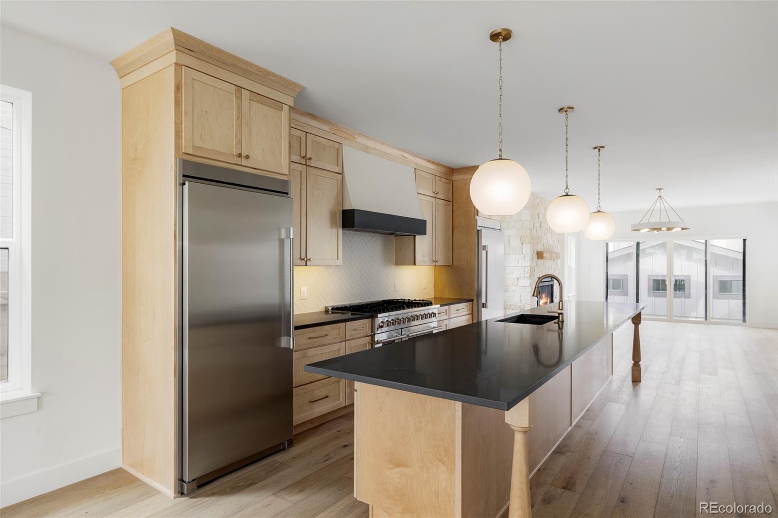 Stunning new construction at 2914 Hooker St in Denver's vibrant West Highlands. Walk to the shops and restaurants on 32nd, and easy access to Sloan's Lake! This modern gem features a timeless brick facade that seamlessly blends with the neighborhood's classic architecture, and is sure to impress with every square foot creatively used. Enjoy the open first floor plan with engineered hardwood floors centered around a chef's kitchen, anchored by an oversized island, quartz countertops, 48" dual fuel range, and matching built-in refrigerator & freezer. The focus of the living room is the 42" gas fireplace with stone-surround and oversized glass sliding doors leading to the backyard. Don't miss the mudroom that provides ample storage for coats, shoes etc. The upstairs has 14' vaulted ceilings, engineered hardwood floors, 3 bedrooms, 2 bathrooms, and a laundry room. The luxurious primary suite flaunts a custom walk-in closet and 5-piece bath (walk-in shower, soaker tub, double vanities, private toilet). The carpeted basement has impressive 9' ceiling clearance and includes a large living room, kitchenette wet bar, two bedrooms(one non-conforming--ideal office/flex), dual-sink bathroom, and second laundry space. The backyard has a covered patio, a gas line for a grill, and a detached 2 car garage. Additional highlights include zoned thermostats per floor, central A/C, tankless water heater large front yard that can be fenced, and a one year builder warranty. Call today to schedule a showing!